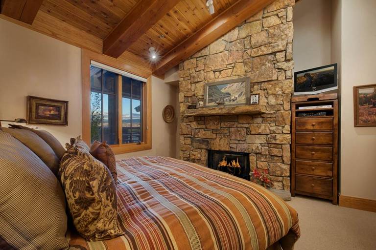 The main floor master suite offers a luxurious king bed, private fireplace, and an ensuite bathroom with a soothing jacuzzi tub and a walk-in shower—your personal spa escape after a day on the slopes. Upstairs, the loft features a queen bed and its own ensuite half-bathroom, providing comfort and privacy for guests. An additional full bathroom is located on the main floor for added convenience.