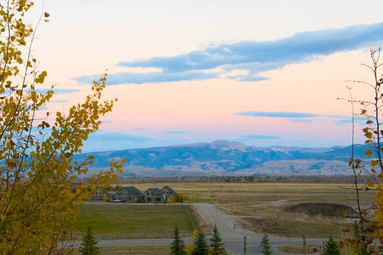 Step into the warm and welcoming living space featuring rich western décor, a cozy fireplace, and large windows that showcase sweeping valley views. The fully equipped kitchen includes everything you need to prepare home-cooked meals, while the open-concept layout encourages gathering and relaxation.
