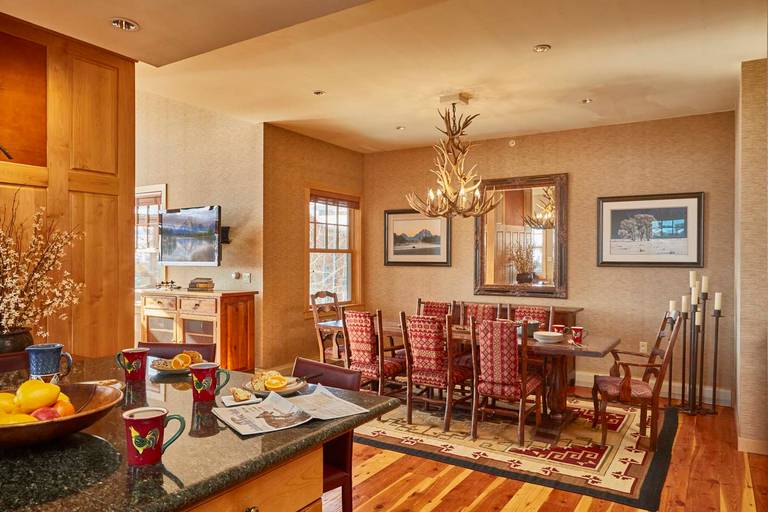 Cody House is the veritable – and elegant – definition of “ski-in/ski-out.” Quite literally located on the slopes of Jackson Hole Mountain Resort, this 3,320 square foot condominium offers stellar views of the mountain that lies just beyond its doorstep.
